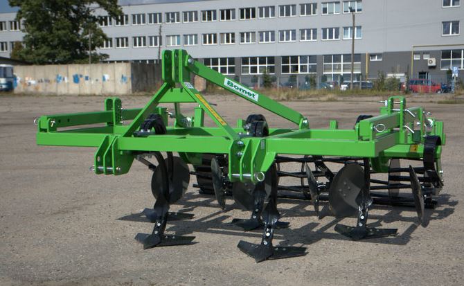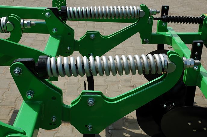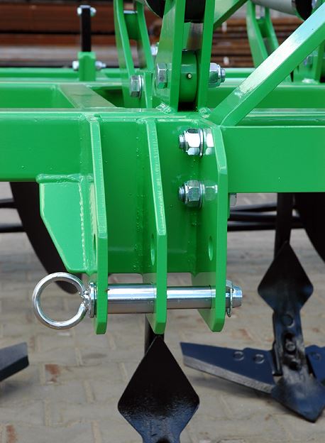 Der angewandte Zahnabstand von 33,5 cm und die Höhe unter dem Rahmen von 65 cm gewährleisten eine stabile Arbeit auf Äckern mit Pflanzenresten, eine Schraubensicherung schützt vor Beschädigungen beim Auffahren auf ein Hindernis. In dieser Version ist der Grubber auch mit Tasträdern ausgestattet, die das Eintauchen der Zähne bis 15 cm. Nbestimmen. Die Arbeitstiefe des Striegels hängt dagegen von seiner Höhe hinsichtlich der Zähne ab.