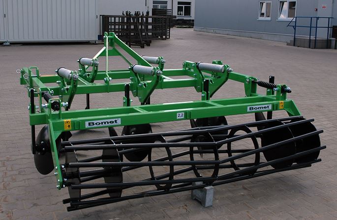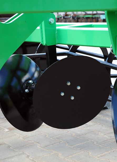 Aggregate mit einer Walze sind mit Scharen und Messerscharen ausgestattet, sie gewährleisten ein tieferes Mischen der Ernterückstände mit dem Boden, und die mit ihm zusammenarbeitende Rohrwalze drückt den gelockerten Boden zu. Ein großer Zahnabstand von 42,5 cm und die Höhe unter dem Rahmen von 65 cm gewährleisten eine stabile Arbeit auf Ackern mit Pflanzenresten, und eine Schrauben- oder Federsicherung schützt vor Beschädigungen beim Auffahren auf ein Hindernis. Die Befestigung der Nivellierungsscheiben auf dem schwenkbaren Rahmen der Rohrwalze ist günstig hinsichtlich der Stoßdämpfung bei Überlastungen und der Änderung ihrer Stellung zusammen mit der Änderung der Walzenstellung. Die Walze ermöglicht auch die Einstellung der Arbeitstiefe des Grubbers bis 15 cm.